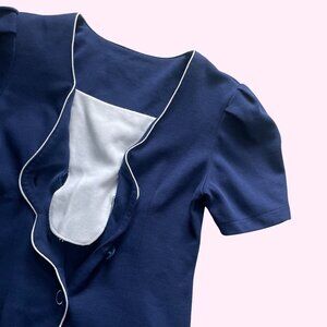From the shoulder pads, to the big buttons, to the squiggly inner trim, to the fairy sleeves...this dress is so much fun! When I first found her she reminded me of a cute airline attendant -- almost kept her for that very reason! The dress features a really cool white insert along the bustline to save you from having to layer a cami underneath. How smart?