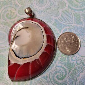 Nautilus and Sterling Silver Pendant Red Large Shell Pendant Shell Jewellery