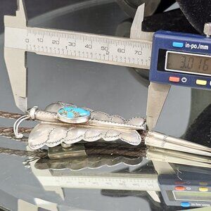 Navajo Turquoise Sterling Silver Bolo Tie Large Butterfly Signed HW. USA
