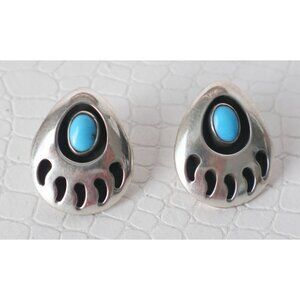 For your consideration is a vintage Navajo Vintage Turquoise Bear Paw Sterling Silver Necklace and Earrings Set.