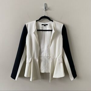 Naven-black & White Colour Block Bardot Peplum Blazer (Size:0)