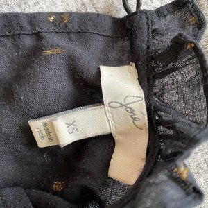 Cute navy blouse with frill and gold detailing! Button closure at the back.