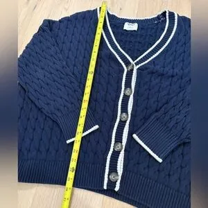 🕶️ Navy Blue Cable Knit Cardigan Sweater size XXL 100% cotton