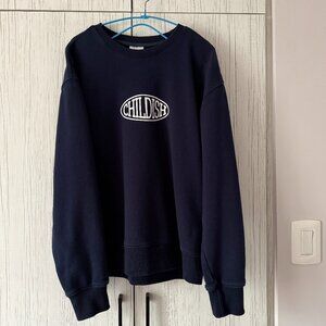 Casual TroubleMaker “CHILDISH” sweatshirt, made from 100% cotton by ad-lib. Features a relaxed unisex fit in deep navy with a bold embroidered CHILDISH logo at the chest. Soft, comfortable, and easy to wear — perfect for everyday lounging, layering, or adding a playful streetwear touch to any outfit.