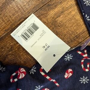 This adorable navy blue kids dress features a festive candy cane print, perfect for any occasion. Comfortable and stylish, it's a great addition to your child's wardrobe.