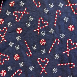 This adorable navy blue kids dress features a festive candy cane print, perfect for any occasion. Comfortable and stylish, it's a great addition to your child's wardrobe.