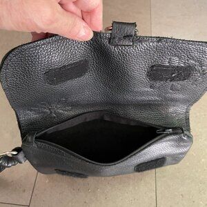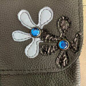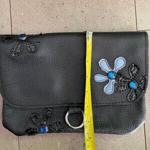 Selling a cute Navy Blue Leather Purse/Clutch with Flower Appliques and Handle. Really nice soft leather. Has both zipper and velcro closure. In excellent used condition.