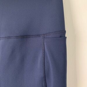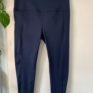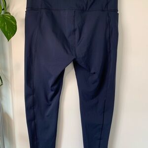 Stylish navy blue leggings. Perfect for workouts or casual wear.