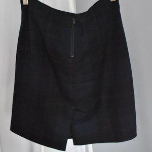 Navy Blue Pencil Skirt Icone size small. Faint plaid pattern includes some green, black and navy blue.
