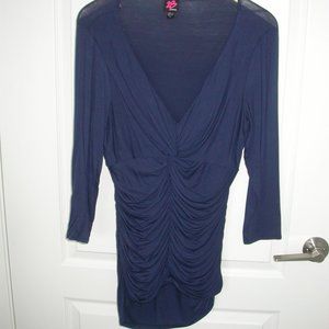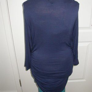 Navy blue deep v-neck rauched tunic - 18" pit to pit - 32" shoulder to hem - marked XL but probably size 12 - new, never worn