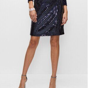 Navy Blue Sequin Skirt Melanie Lyne Pull On Elastic Waist Skirt Size 14 NWT NEW WITH TAGS ~ Size 14 ~ 95% Polyester, 5% Elastane. Lining: 100% Polyester ~ Retailed for $118