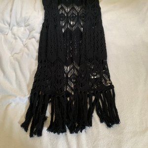 Navy blue short sleeved knit cardigan from Roxy with tassels at the bottom.