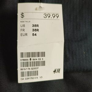 This is a new slim-fitted pair of dress pants designed by H&M, that can be worn with a suit blazer or just a white collar long-sleeve shirt.