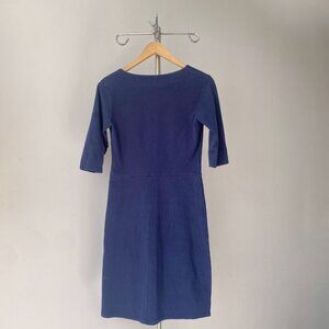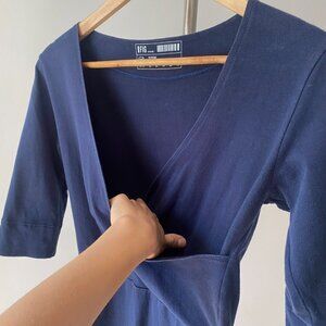 🍂 Navy Blue Stretch Cotton Faux-Wrap V-Neck Soft Above-Knees Travel Dress by Fig Made in Canada
