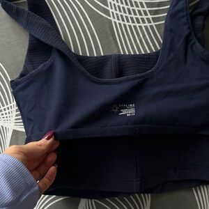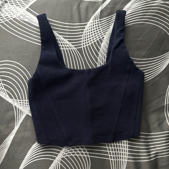 Stylish navy blue crop top with a textured design and a lining inside. Perfect for casual outings.