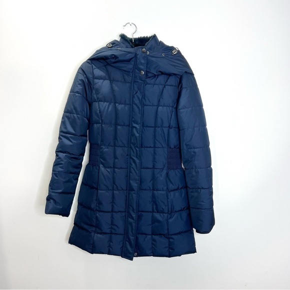 Navy Blue Vegan down Quilted hooded Parka winter coat XS