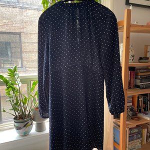 Navy Blue with White Polka Dot Long Sleeved Flare Dress