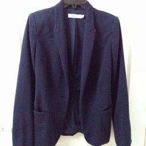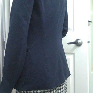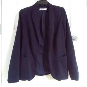 Size Xs. Navy lined inside. Soft flexible comfortable Fabric. Length 62cm sleeve 61cm across chest under arms about 45cm. Missing closure button.