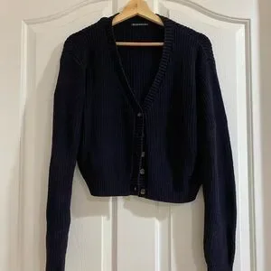 Knit Brandy cardigan. Good used condition no pilling, soft material. Dark navy colour. One size fits all but could fit between sizes xs and m