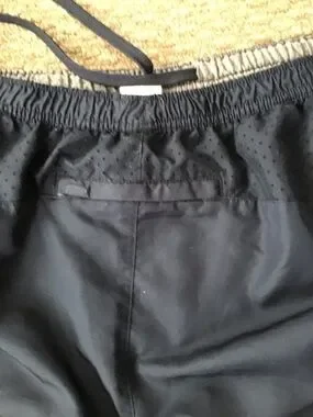 Navy athletic walking pants with a grey elastic inner waistband. Drawstring waist for secure fit. Lightweight polyester fabric. Simple sporty style for workouts or everyday wear.