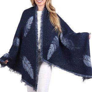 Navy Feathered Patterned Scarf/Cape/Blanket Scarf Reversable 100% Viscose
