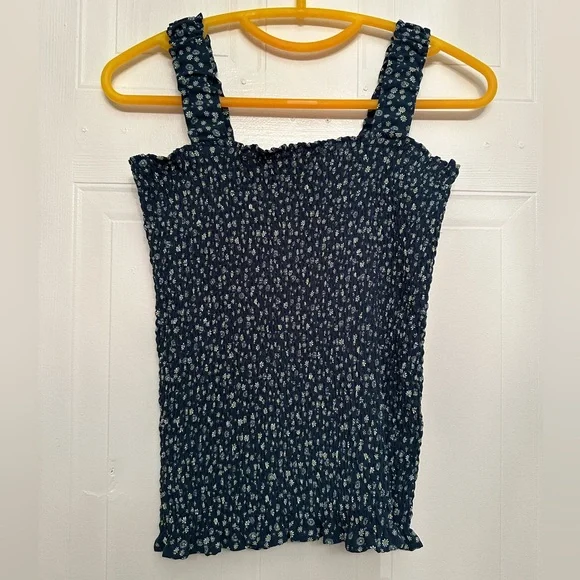 Navy Floral Ruched Tank Top