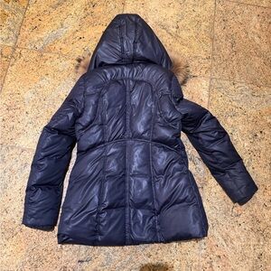 Navy jacket featuring a striking leopard print lining. Stylish and bold design.