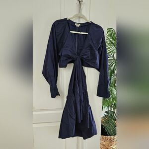 Elegant navy dress with puff sleeves. Features a stylish front knot design and open back * dress for sale is navy, excellent condition