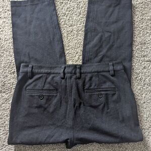 These are a great pair of dark blue trousers that are a thicker knit material. They have a button closure and functional pockets.