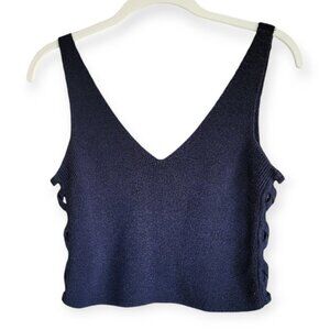 Navy Luxury Linen Cotton Knit Tank INTERMIX Crisscross size S