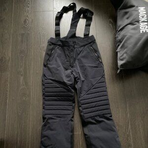Jacket is Size S and Pants are Size XS. Comes with Mackage storage bag. No tags but new condition. Really really nice matching set. Can wear together for skiing/snowboarding/snow activities (super warm and insulated) - down jacket with real fur trim. Or can just wear as a regular winter parka on its own. Pants come with suspenders. Retails $2500 for the set.