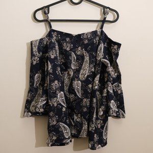 Navy Paisley and Floral Off Shoulder Blouse with straps