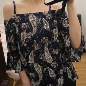 Navy Paisley & Floral pattern Off Shoulder Blouse
