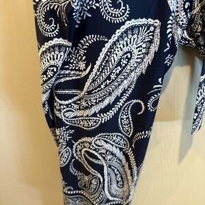 Elevate your style with this chic navy paisley jumpsuit. Perfect for any occasion, it offers comfort and elegance.