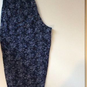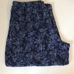 Navy Patterned Soft Pajamas. If soft PJs are what you are looking for then this sleepwear set is for you. Very attractive navy patterned top and Capri bottoms. For a warm and cosy, just right sleeping experience. Size Medium.