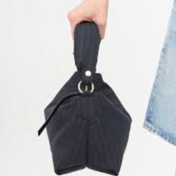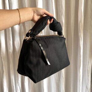 Navy Pinstripe Padded Bag in Navy Wool blend