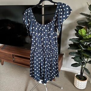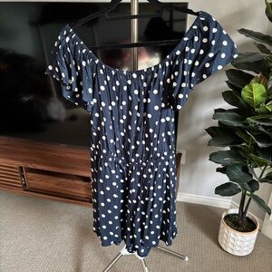 Navy Polka Dot off the shoulder shorts jumpsuit H&M