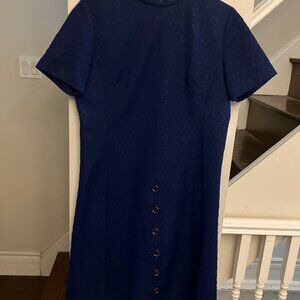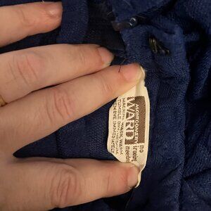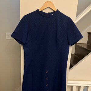 1970s textured poly dress in EUC. Label is Montgomery Ward. Color is a deep navy, not purple as in the detail photos.