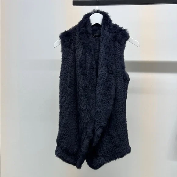 Stay cozy and stylish with this navy 100% rabbit fur vest. Perfect for layering, it adds warmth and texture to any outfit.