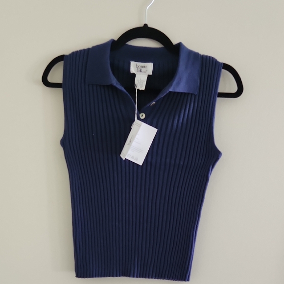 Elevate your style with this elegant navy ribbed tank top. Perfect for any casual occasion.