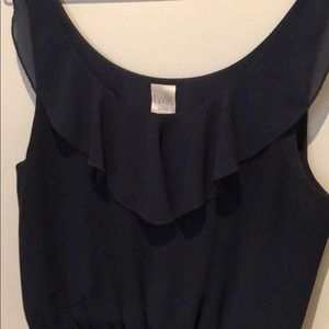 Sweet ruffle chiffon dress in NAVY (sorry cover photo doesn’t capture the colour that well). All in all in great condition, minus minor deodorant stains under arms (not that noticeable unless you are looking for them and may come out with washes).