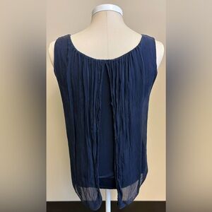 Navy Sleeveless 100% Silk drapey Women's Blouse size Medium
