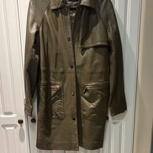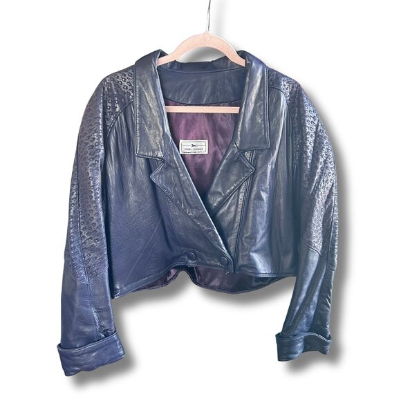 Statement vintage leather jacket, thoughtfully modernized with a cropped silhouette that hits right at the hip. This piece blends classic craftsmanship with a contemporary edge, making it easy to style with high-waisted denim, trousers, or dresses.