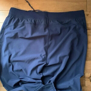 Medium dark navy blue capris with posters. Elastic wide band waist with drawstrings. Stitching in legs, more casual/sport than dressy. Generous size 1X with stretch in fabric. Immaculate.