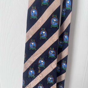 Elevate your style with this elegant navy and beige patterned tie. Perfect for any formal occasion.