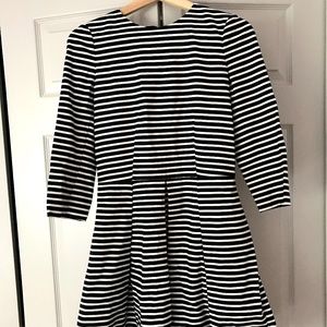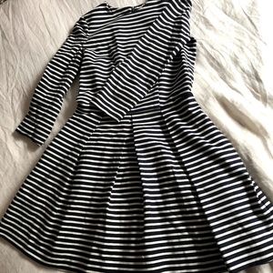Structured cotton spandex blend, darts give a nice shape at the waist, A-line skirt flares out from the waist, bracelet length sleeve. Full back zip makes it easy to get on and off. Will give you a cute 50's shape.