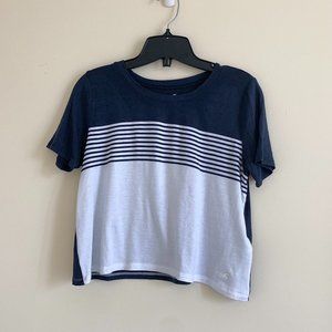 This cute top has never been worn before and is in great condition! The white part is a tiny bit see-through but other than that, the quality is great! The fabric is soft and it’s perfect for summer!
