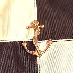 Stylish navy and white tote bag with a chic anchor detail.