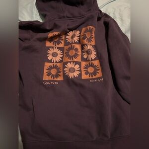 Stay cozy and stylish with this navy blue hoodie by Vans. Perfect for casual outings. Cute flower pattern on the back ladies size medium