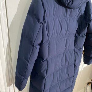 Navy blue, real down hooded puffer coat -Eddie Bauer